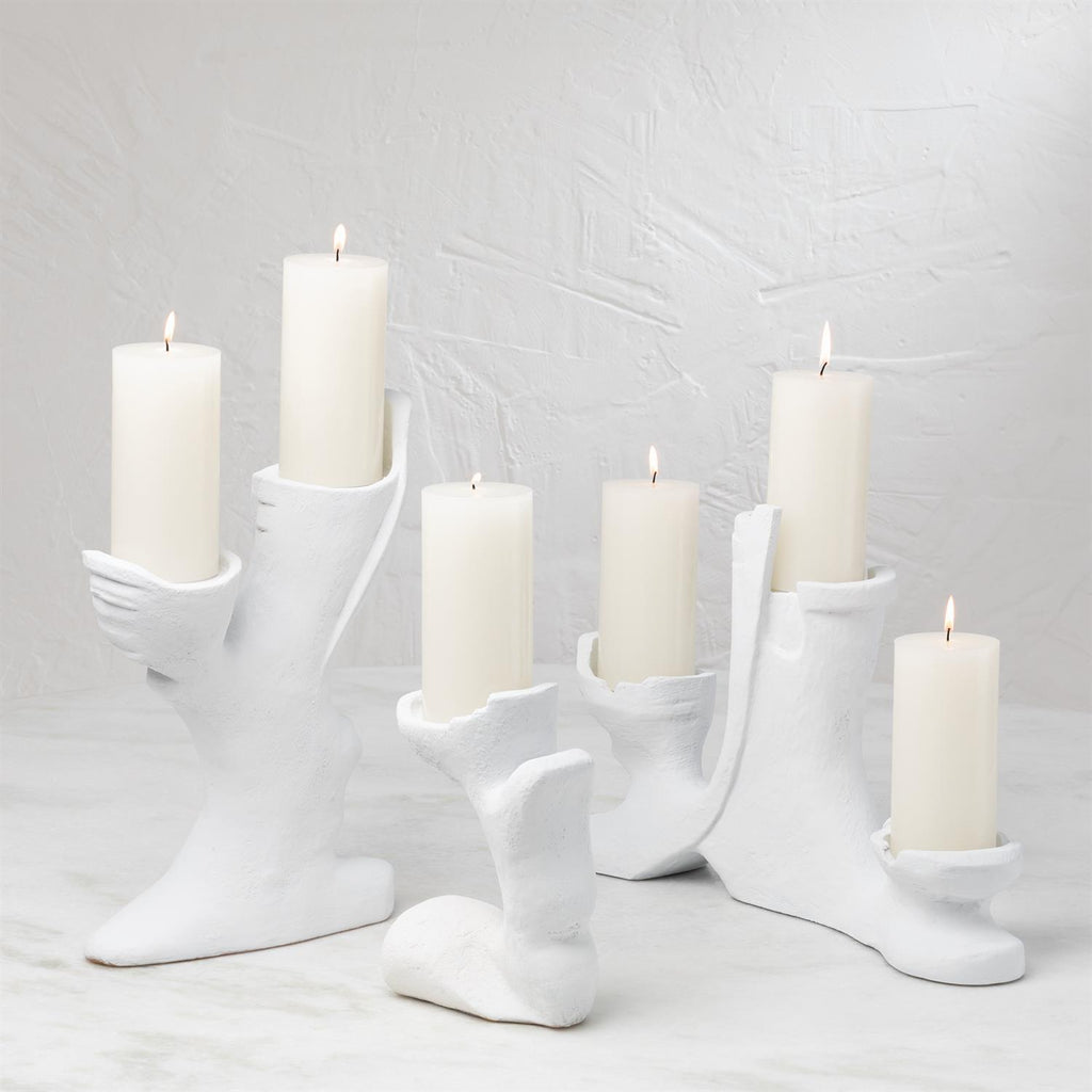 This pillar is an organic candleholder that creates a uniquely beautiful tablescape. Its organic forms create visual interest and can be layered or used alone.