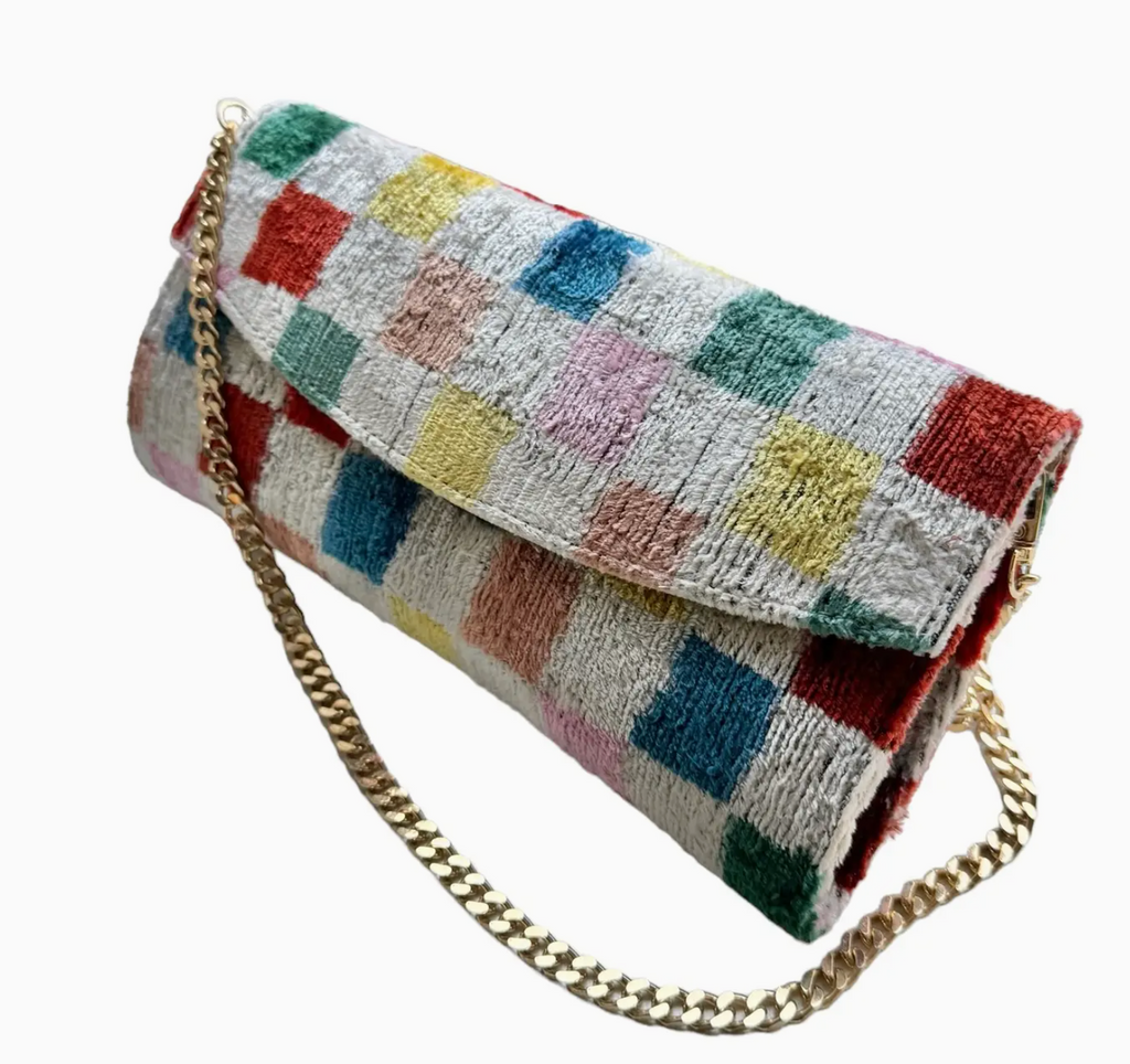 This vibrant checkered clutch is a bold, stylish accessory that combines classic patterns with a modern twist. Featuring a striking checkered design in a mix of bright, eye-catching colors like red, yellow, blue, or green, this clutch adds an energetic pop to any outfit. The geometric pattern creates a sense of movement, making the clutch a standout piece for evening events, casual outings, or a night out. Made from materials such as canvas, leather, or faux leather, it offers durability along with a chic appearance. The compact size and sleek silhouette make it easy to carry, while its vibrant design ensures it’ll be the focal point of your ensemble, bringing a playful and fashionable edge to your look.