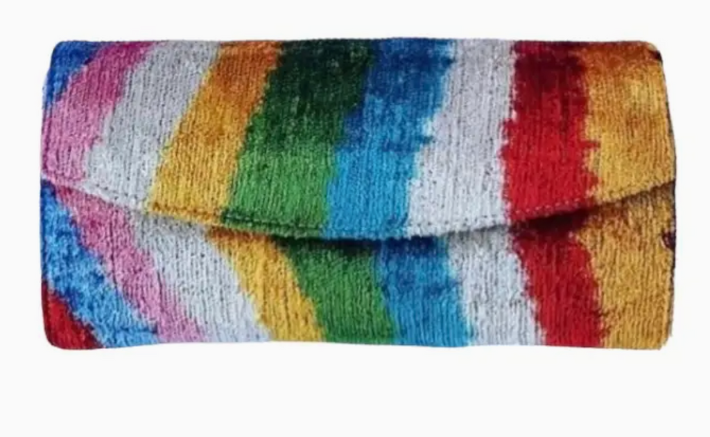This rainbow clutch is a vibrant and eye-catching accessory, designed to make a bold statement. The clutch features a spectrum of colors, seamlessly blending shades like red, orange, yellow, green, blue, indigo, and violet in a sleek, compact design. Crafted from premium materials such as satin, leather, or metallic fabric, the clutch is both luxurious and functional. It’s often embellished with glitter, sequins, or beads, adding texture and sparkle to its striking visual appeal. Perfect for evening events or festive occasions, the rainbow clutch adds a playful yet sophisticated touch to any outfit, offering a burst of color and a pop of personality.