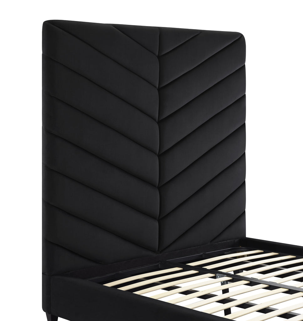 Spend your night in style with a channel-tufted design upholstered in plush velvet. Slats are included and box spring is not required.