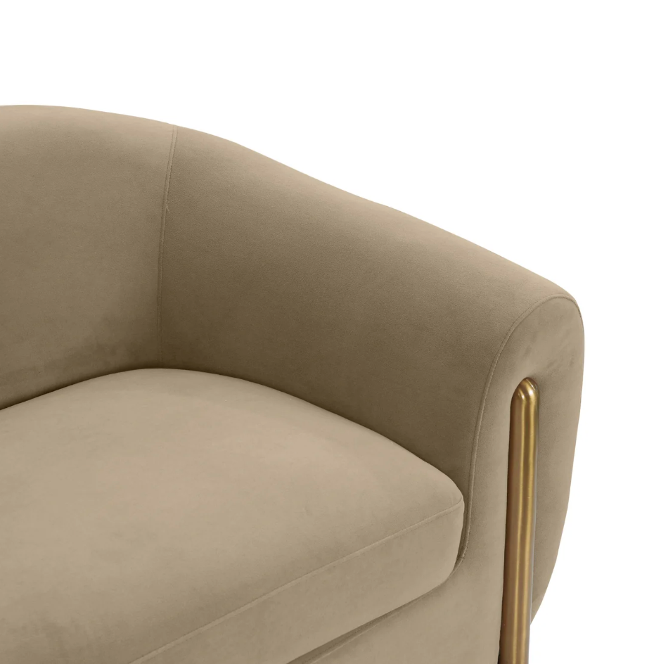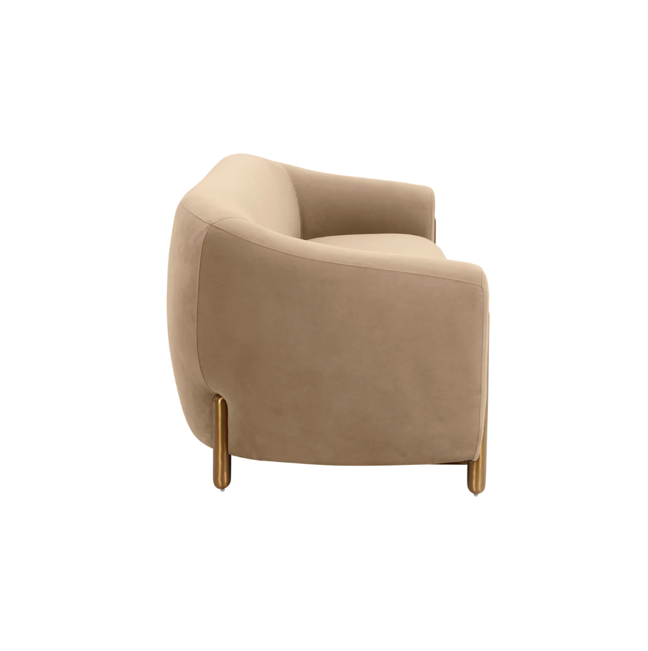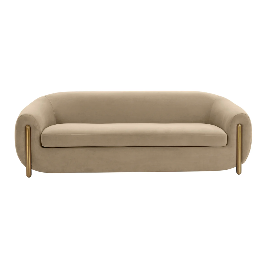Elevate your home with this stunning Brown Velvet Sofa. Crafted with the finest materials, the sofa features sumptuous velvet upholstery in a rich cafe au lait brown hue that exudes elegance and sophistication. Plush cushions provide exceptional comfort, making this sofa the perfect spot to relax after a long day, and the brass details add a luxe statement.