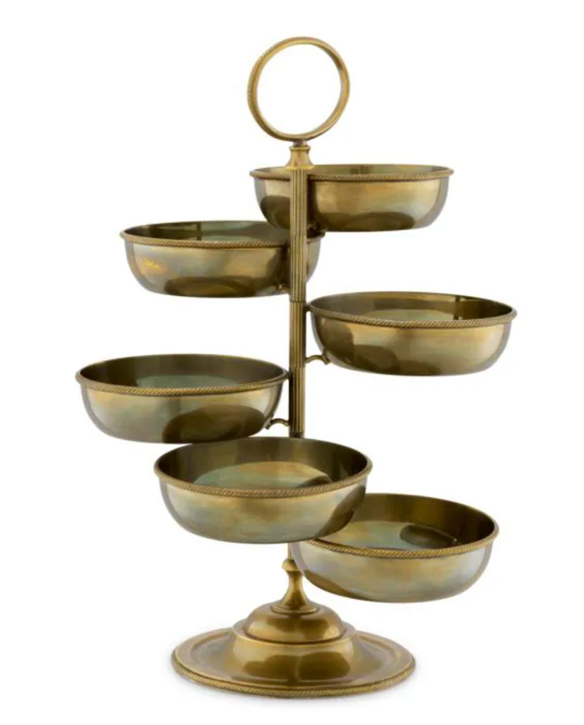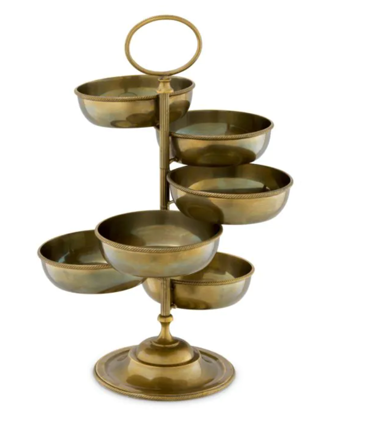 This elegant stand features six gracefully movable bowls, offering both beauty and versatile functionality for displaying or serving. Its timeless design and luxurious finish make it a captivating centerpiece, perfect for those who appreciate refined elegance and exquisite detail.